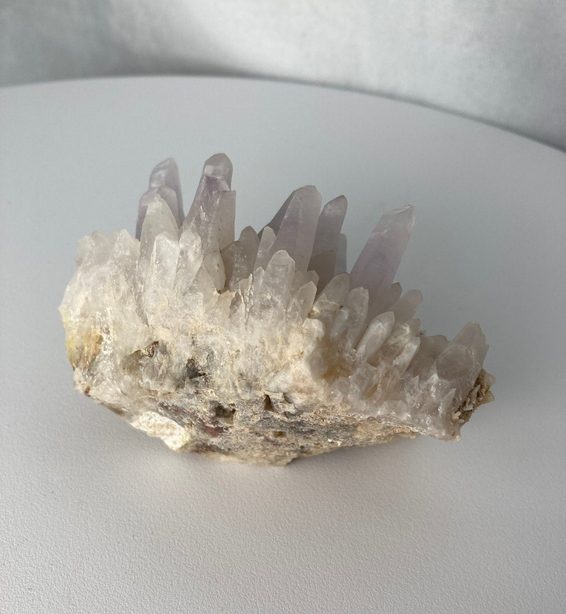 Some of the spikes of this amethyst healing stone are oriented in various directions, contributing to the crystal's distinctive and intriguing character.