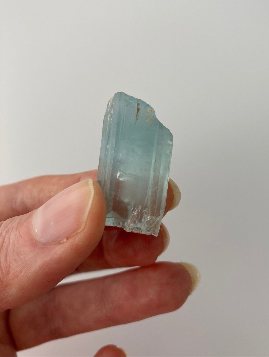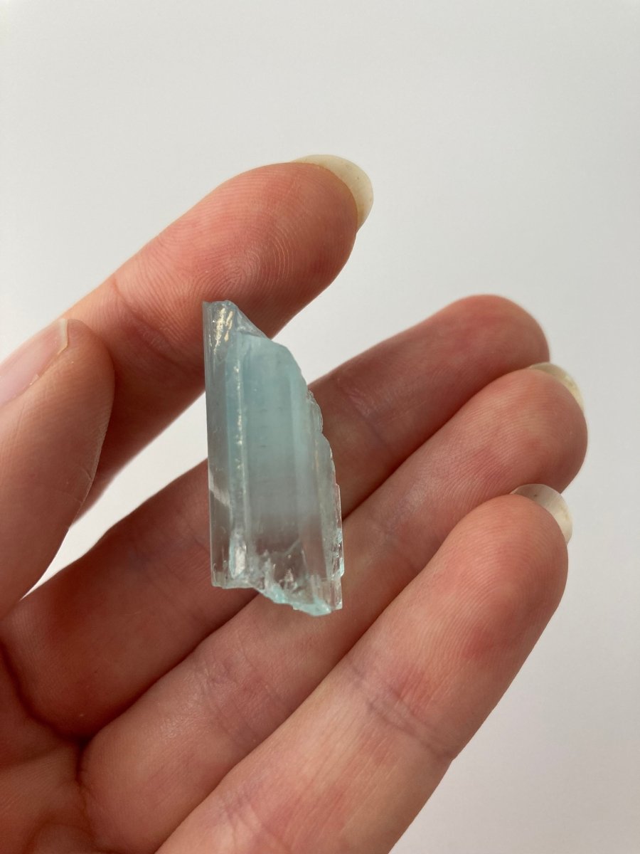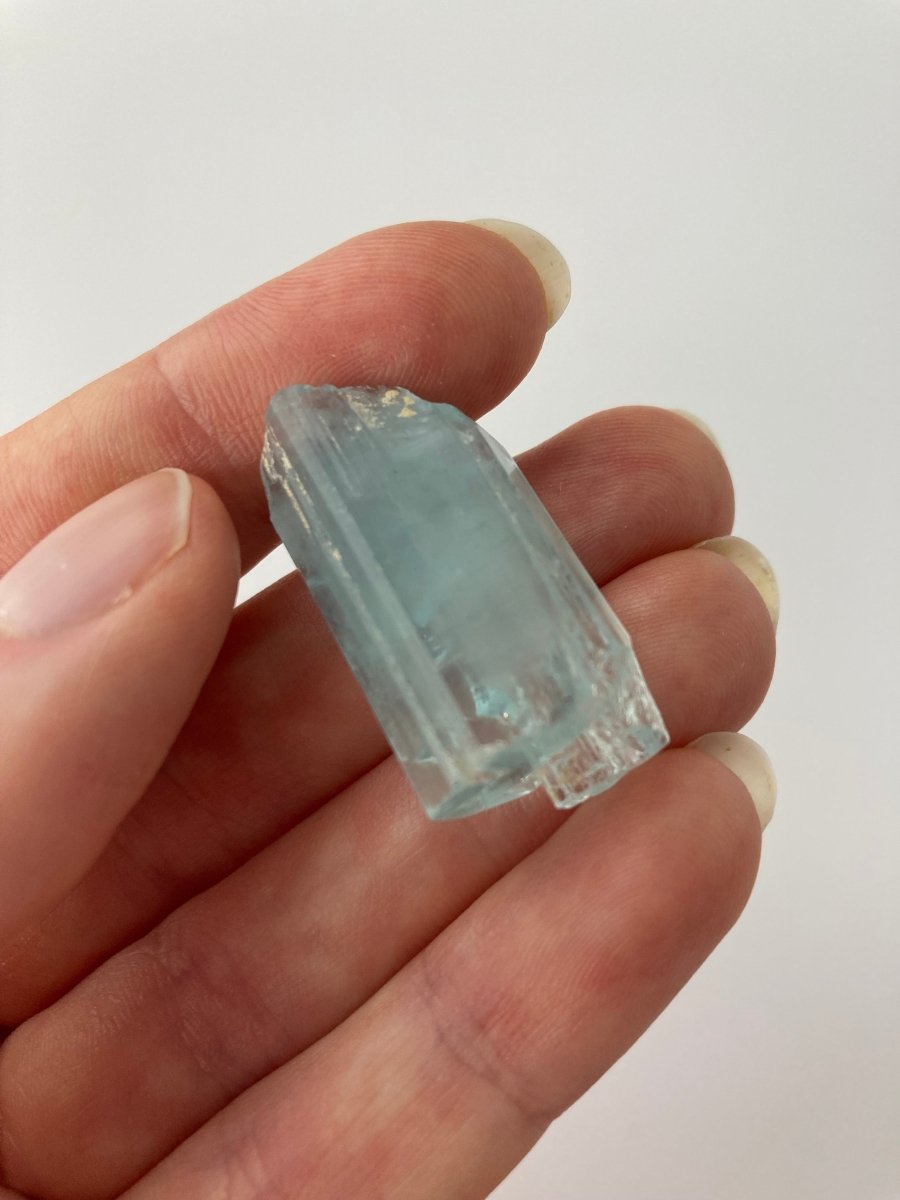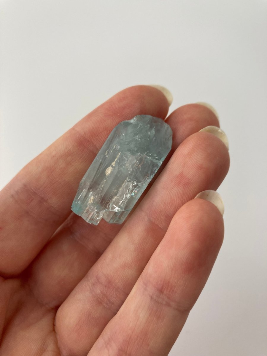 Weighing a 43 carats, this blue aquamarine crystal is not small and it also possesses a decent width, making it a good piece in any jewelry collection. Its size and colour make it the perfect choice for creating stunning jewelry, enhancing decorative displays, or serving as a centrepiece in any crystal collection.