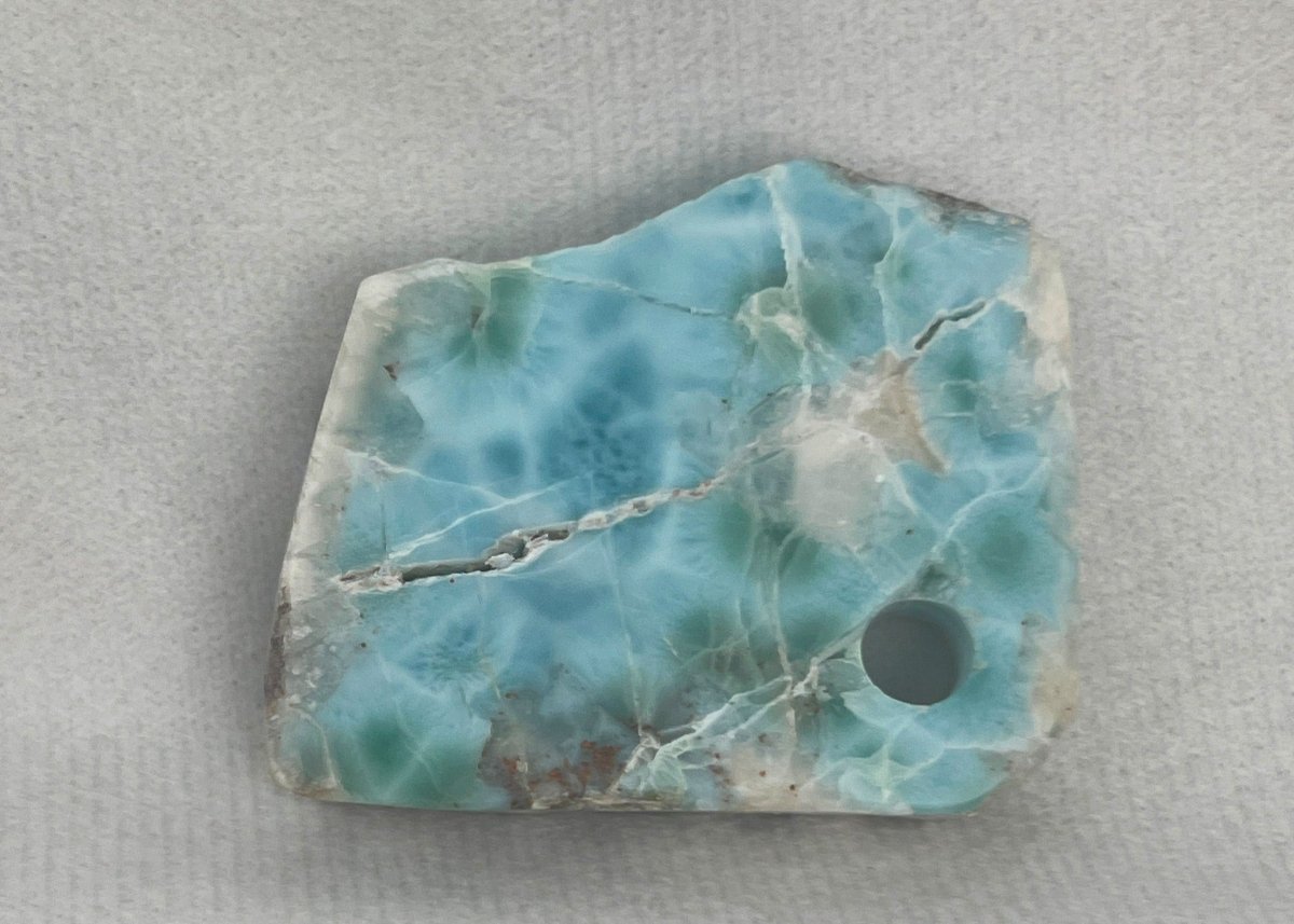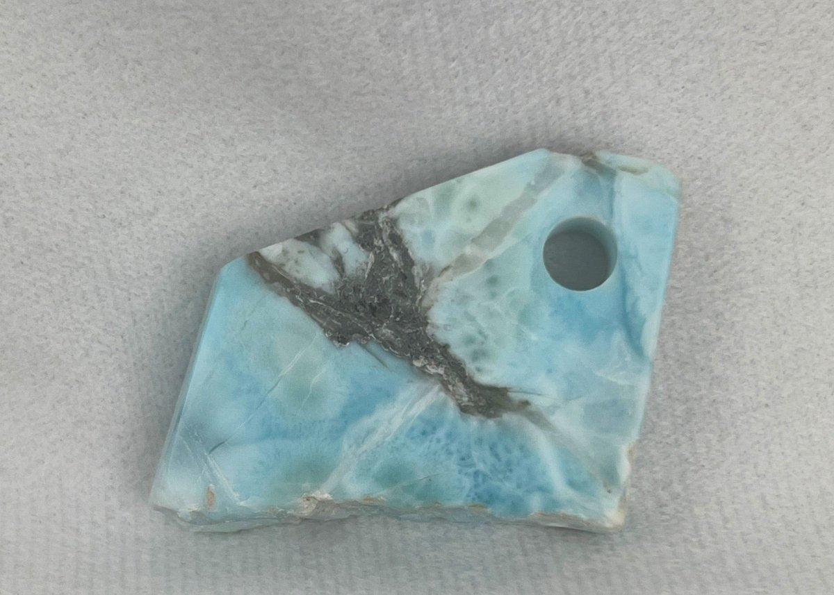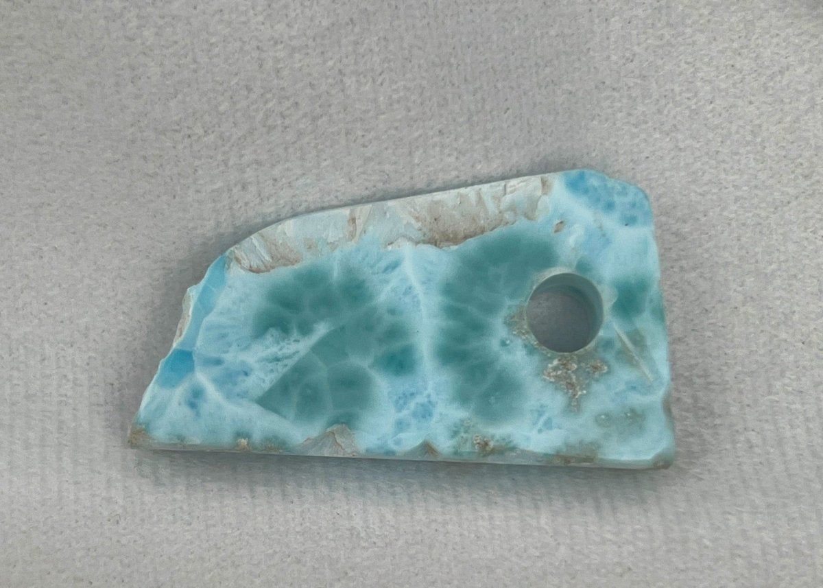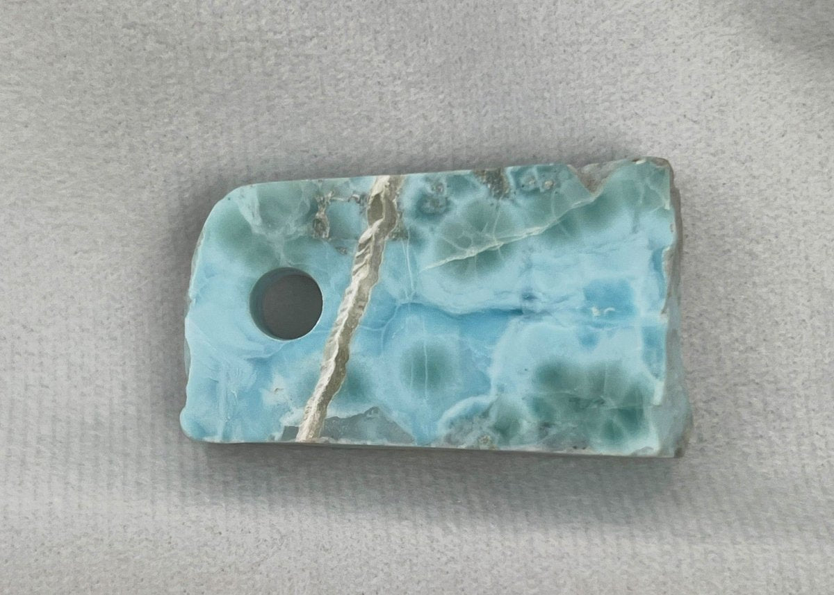 This large larimar pendant features a unique and creative natural pattern that enhances its charm and character. Its originality inspires wearers to embrace their uniqueness and pursue their individual paths of personal and spiritual growth.
