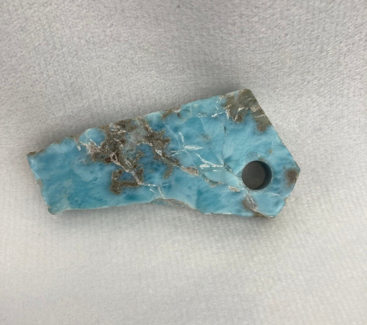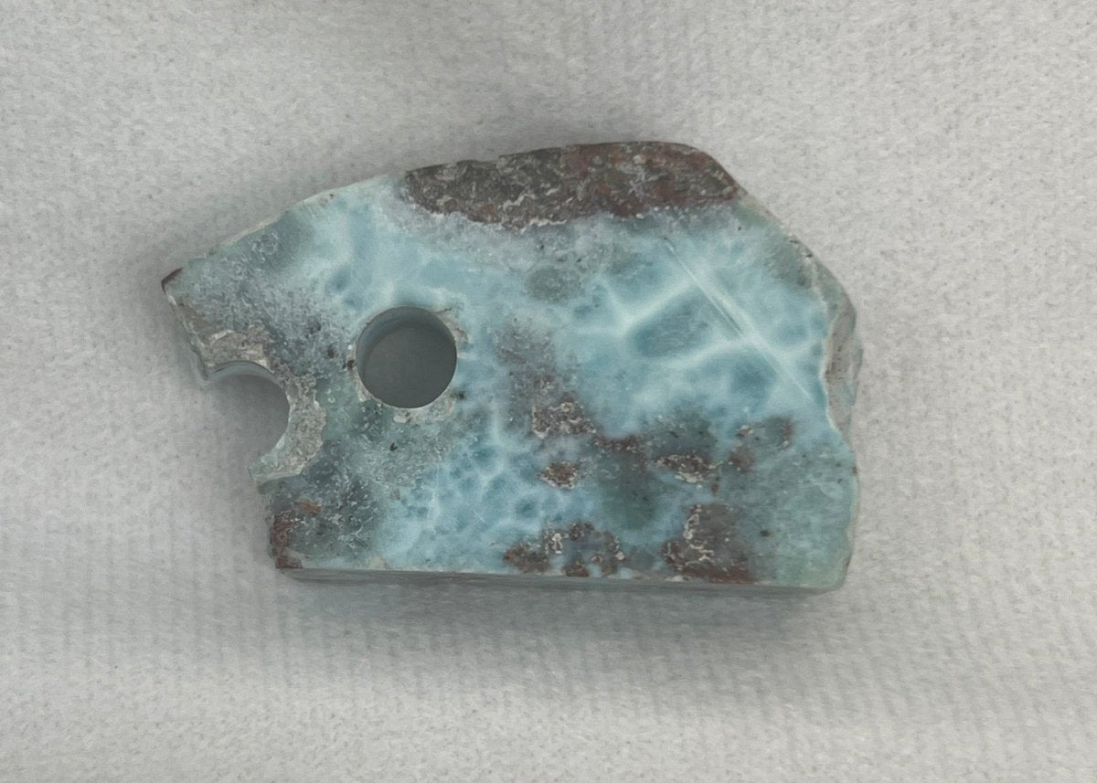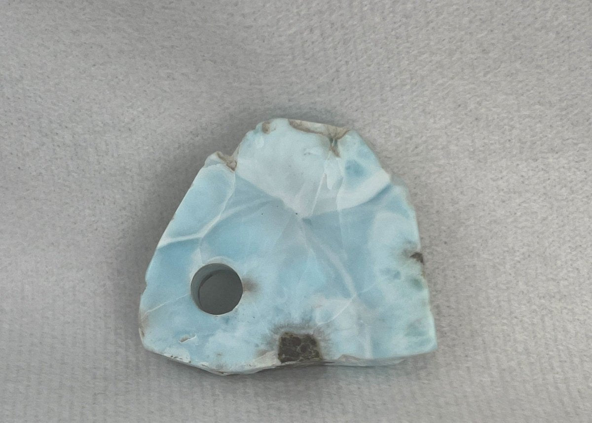 This large larimar pendant features a unique and creative natural pattern that enhances its charm and character. Its originality inspires wearers to embrace their uniqueness and pursue their individual paths of personal and spiritual growth.