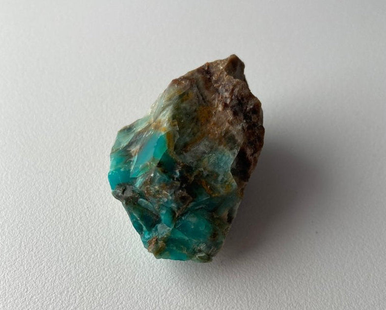 This stunning rough colla wood specimen is a true showcase of nature's artistry, featuring captivating chrysocolla in a rich blue hue. This intense shade creates a striking contrast against the warm, earthy tones of the colla wood, resulting in a beautiful piece that captures attention. The interplay of colours not only amplifies the beauty of the specimen but also brings a grounding and soothing presence to any environment.