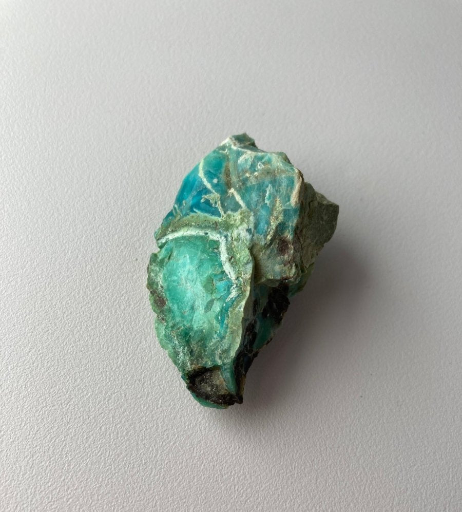 ✨ Much of the surface of the colla wood is covered with the striking gem chrysocolla.