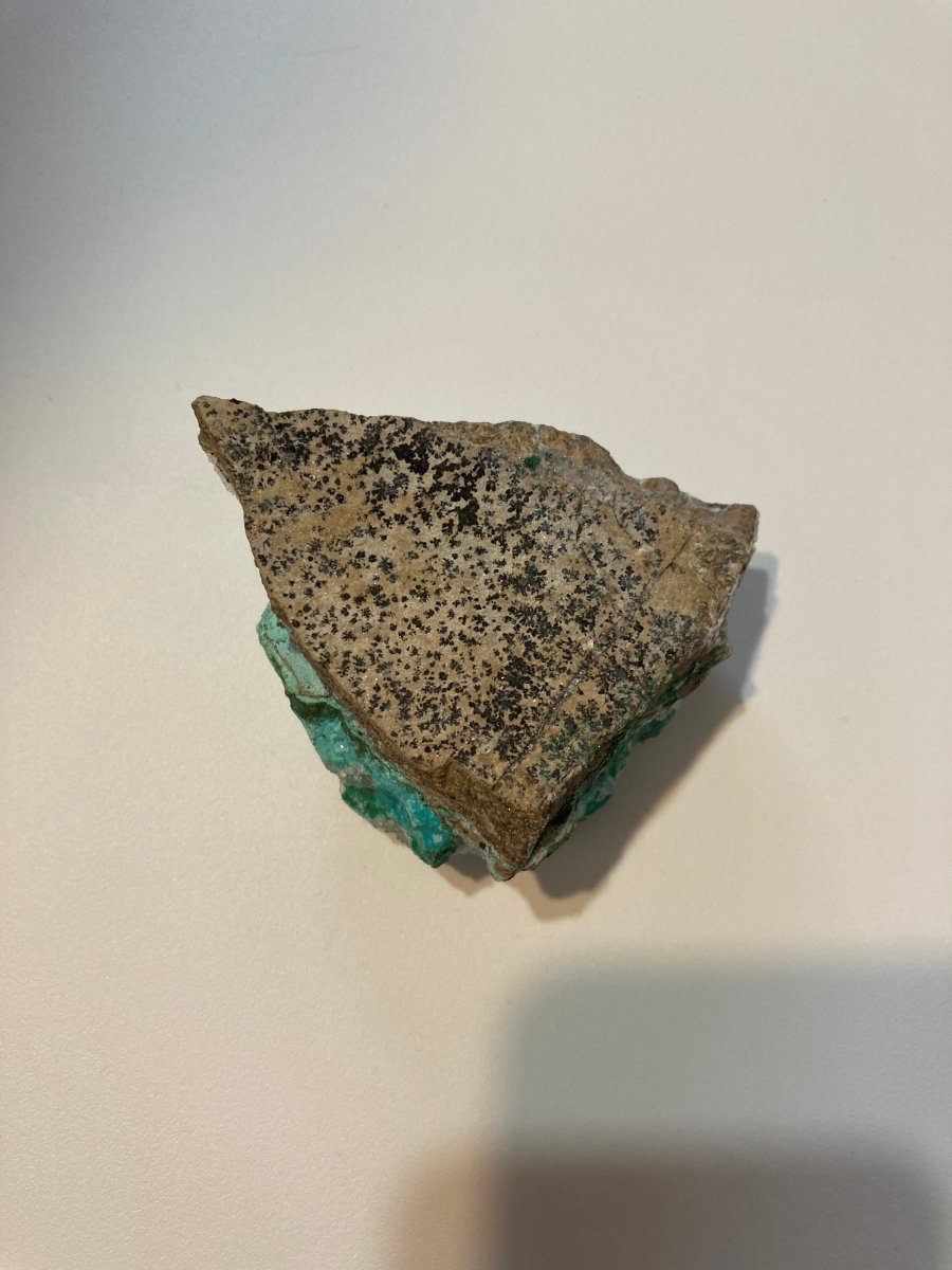Обратная сторона голубой хризоколлы имеет светло-коричневый оттенок, изящно украшенный крошечными чёрными точками, которые придают ей глубину и индивидуальность. Это сочетание землистого коричневого и яркого чёрного цветов создаёт эффект заземления, подобно надёжному якорю во время шторма, делая кристалл мощным инструментом для обретения чувства благополучия и стабильности.