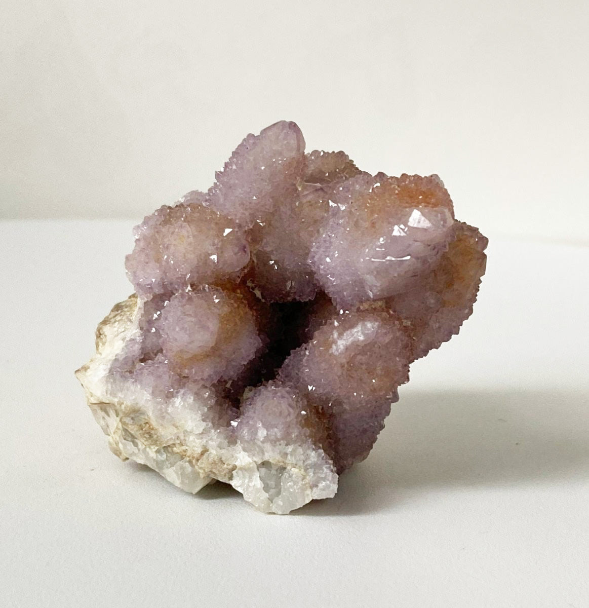 Кактусовый кварц — это кристалл кварца, характеризующийся необычной формой, часто сравниваемой с кактусами. Он состоит из крошечных кристаллов, которые формируются на поверхности более крупного кварцевого кристалла в виде узора, напоминающего кактус. Кактусовый кварц состоит из диоксида кремния. Как и у других типов кварца, его твердость 7 по шкале Мооса указывает на его долговечность.