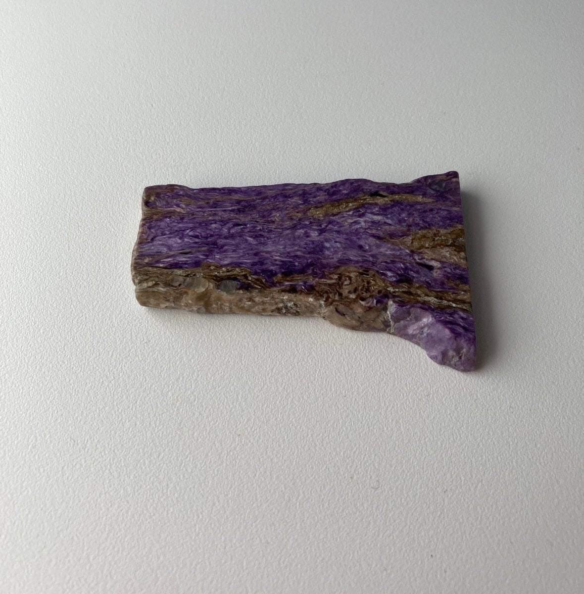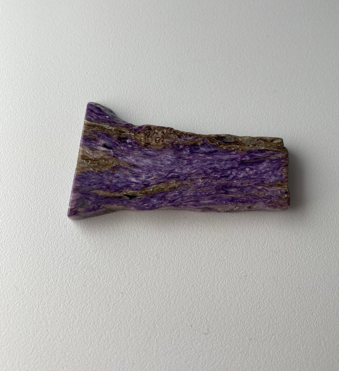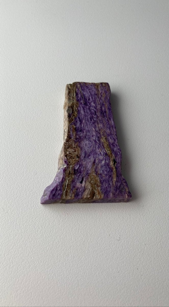 Этот потрясающий кристалл чароита, один из кристаллов, символизирующих смелость и уверенность, отличается элегантной, вытянутой формой, которая усиливает его визуальную привлекательность. Фиолетовые оттенки и изящные узоры создают завораживающий дизайн, притягивающий взгляд с любого ракурса, как спереди, так и сзади. В конечном итоге, это уникальное изделие станет ярким дополнением к любому пространству, выделяясь и привлекая внимание, где бы оно ни находилось.