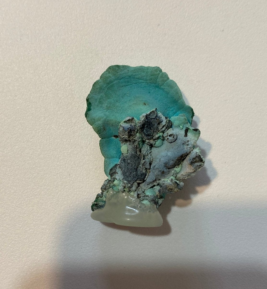 Этот кристалл хризоколлы стоит отдельно на подставке, что позволяет вам с легкостью любоваться его красотой.