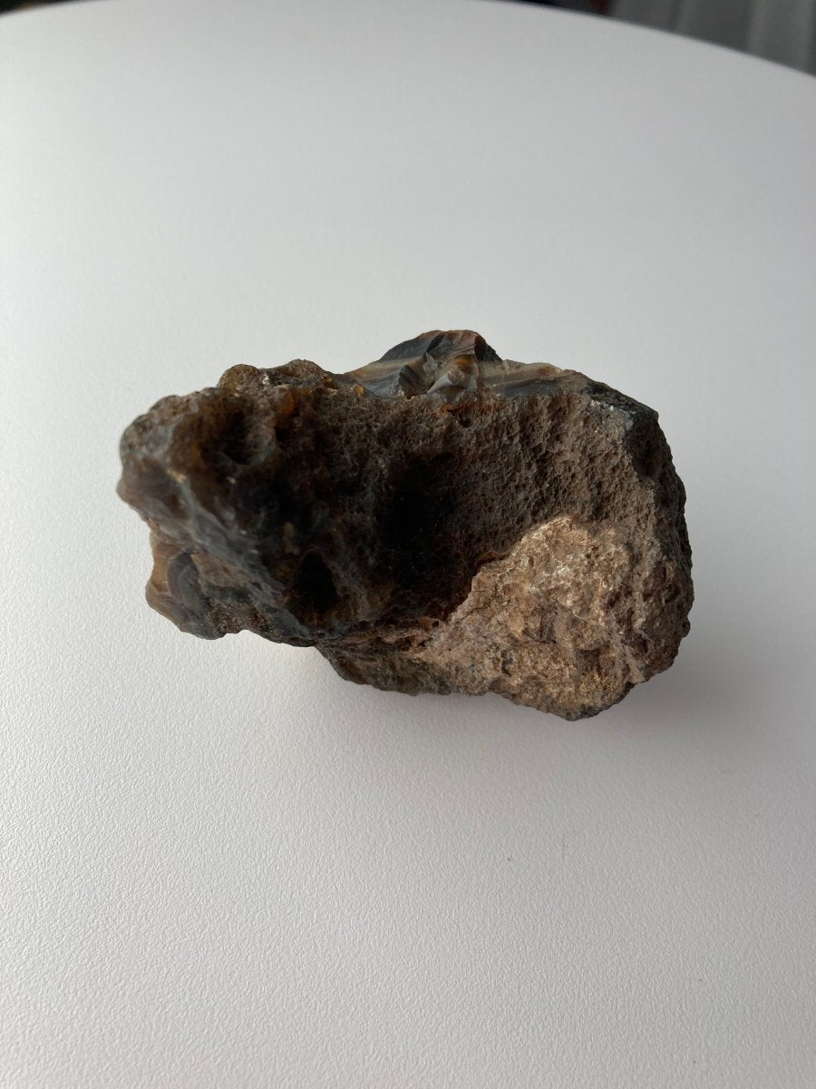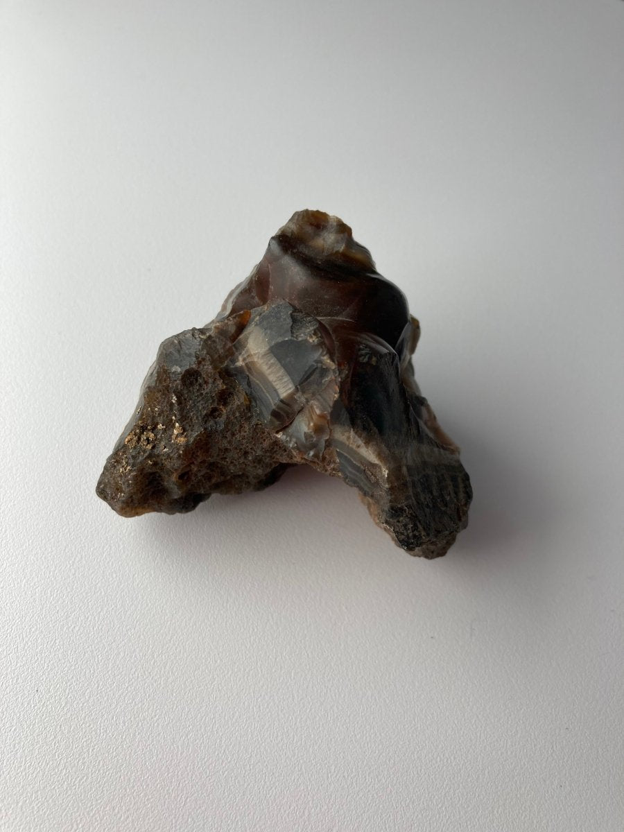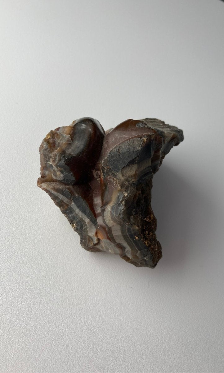 Восхититесь природным мастерством этого уникального кратерного агата , одного из вулканических кристаллических пород, форма которого мгновенно выделяет его среди других. Его очертания тонко напоминают форму губ — не точное или отполированное изображение, но органичный, плавно изогнутый силуэт, вызывающий ассоциации с этой знакомой формой.