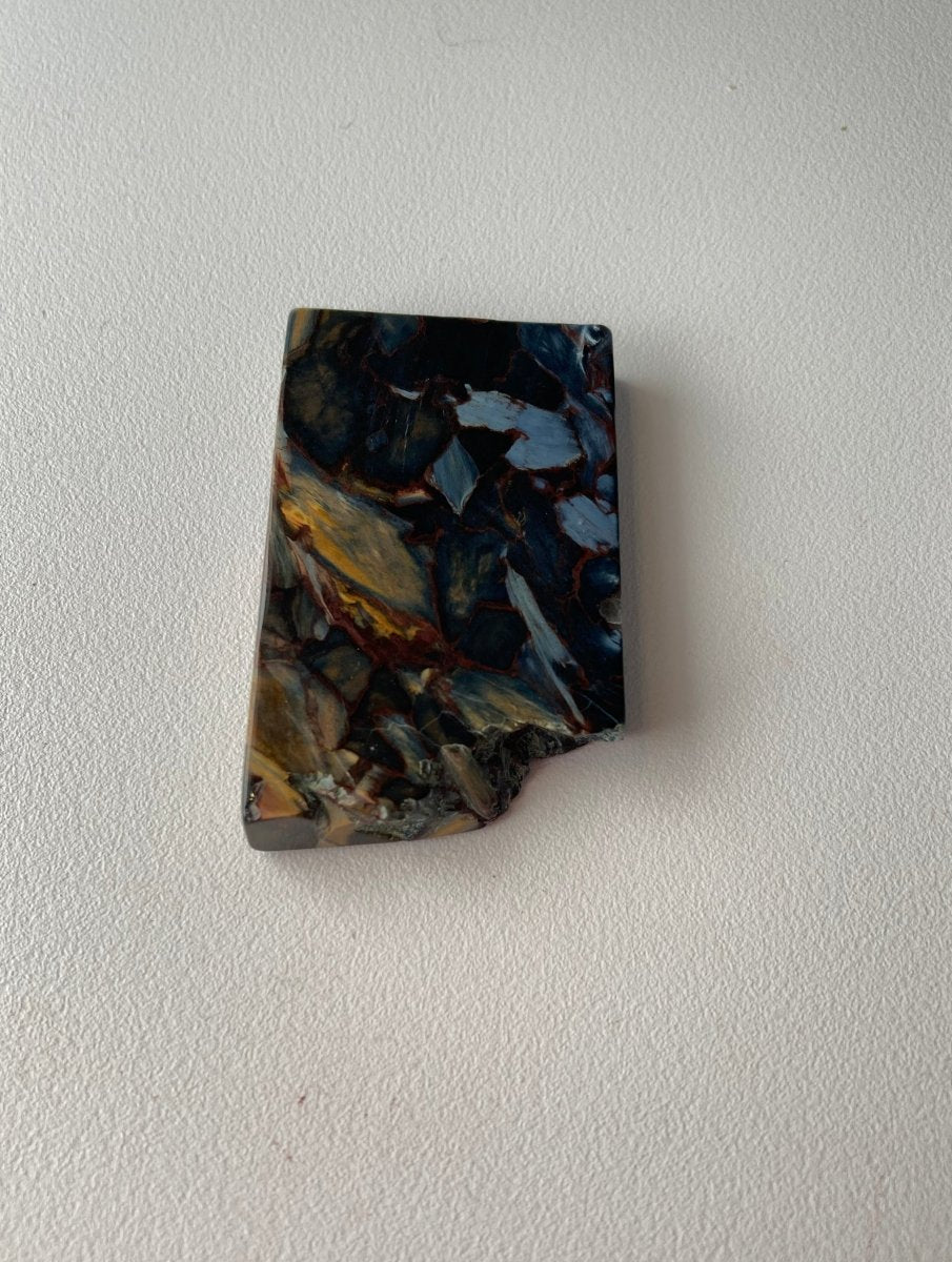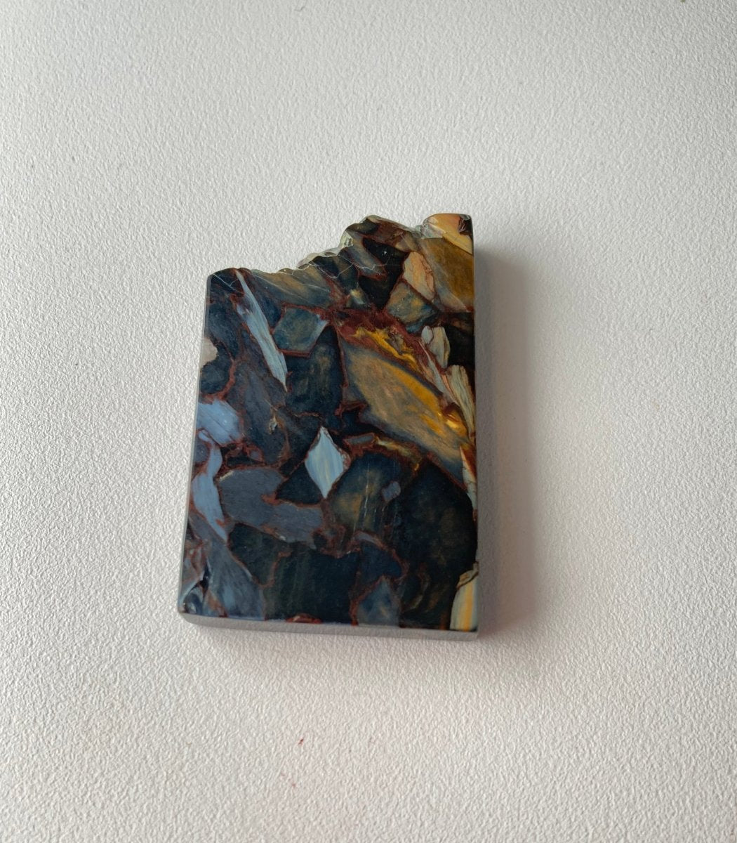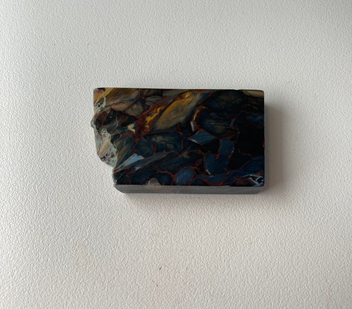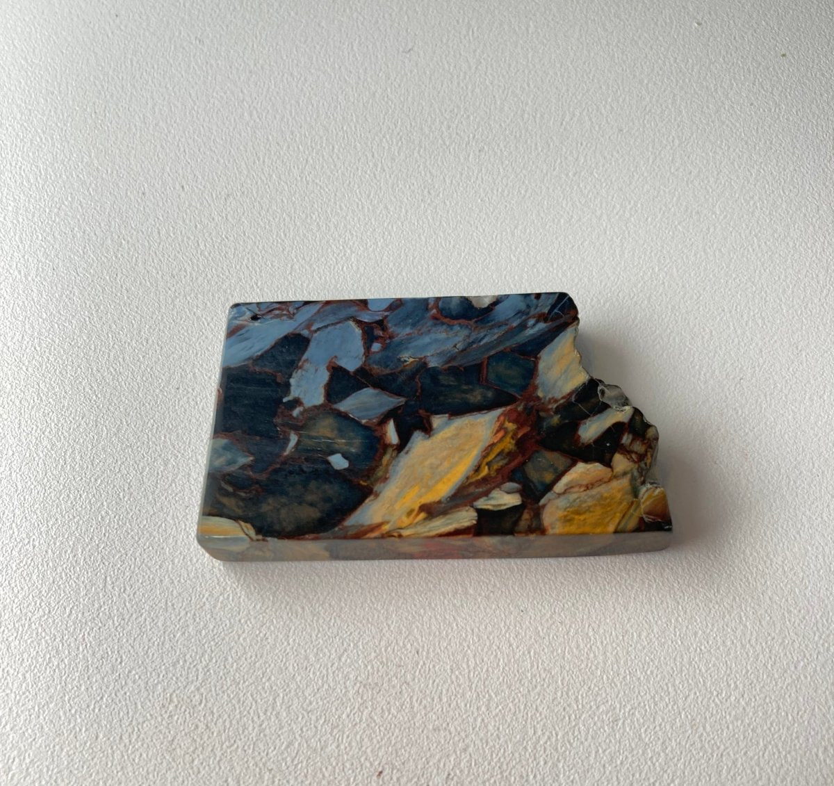 Откройте для себя очарование этой переливающейся плиты петерсита, почти прямоугольной формы, символизирующей стабильность и равновесие в духовности. Насыщенные синие тона, представленные узором из золотистых и синих оттенков, приглашают вас погрузиться в самоанализ и способствовать духовному росту. Насыщенные синие оттенки способствуют размышлениям и самопознанию, воплощая в себе целительную энергию, дарующую спокойствие и восстановление.