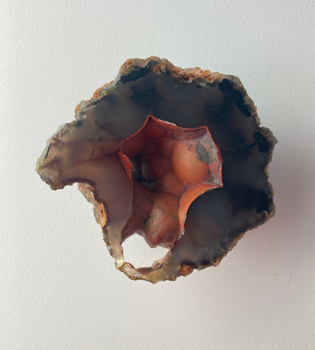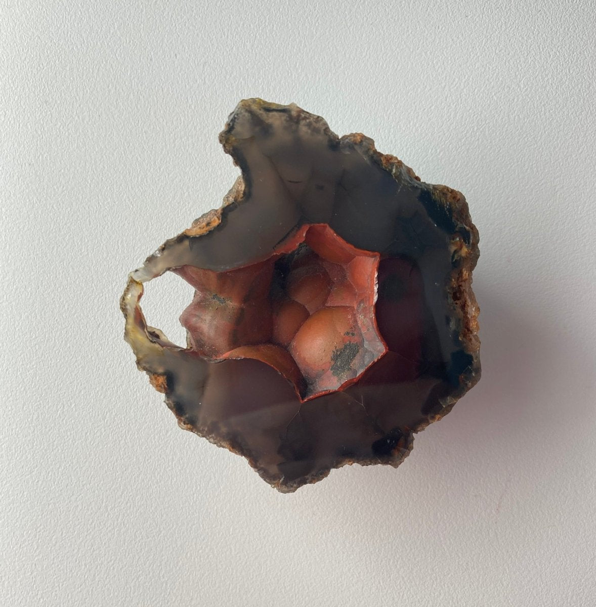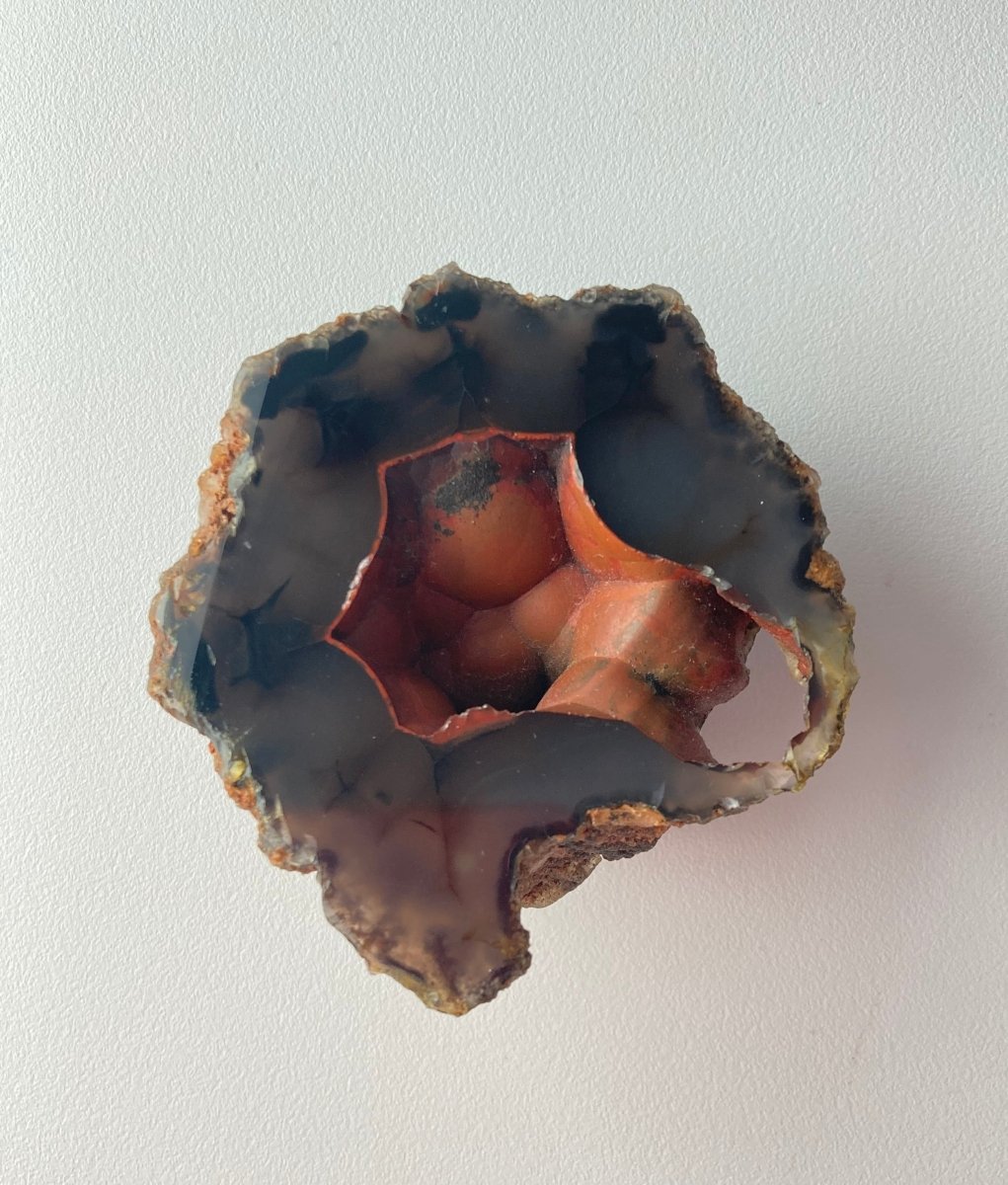 ✨ Яркий красный цвет этой жеоды из агата "Красная Лиса" вдохновляет на страсть и побуждает людей следовать своим мечтам и целям.